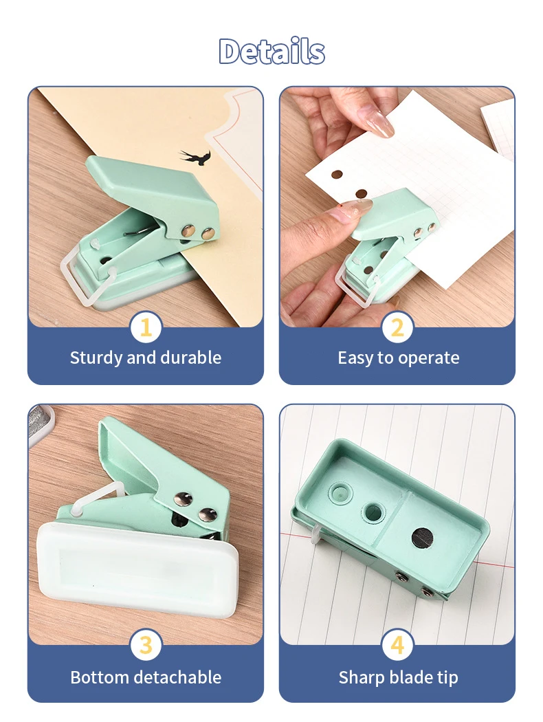 1. Effortless: Can be operated with one hand, simple and convenient to use, can punch up to 10 sheets of paper.