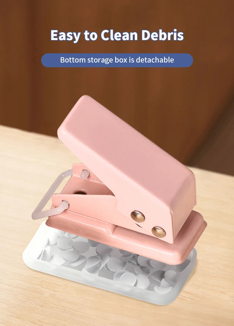 4. Easy to clean: Paper scraps are automatically stored at the bottom of the punching machine, so they won't fall everywhere.